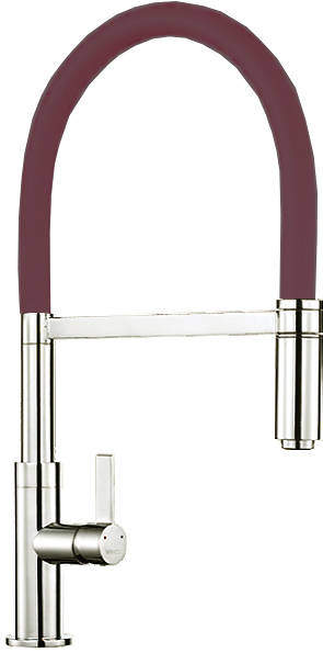Spirale single lever rinser kitchen tap in brushed steel with wine hose.