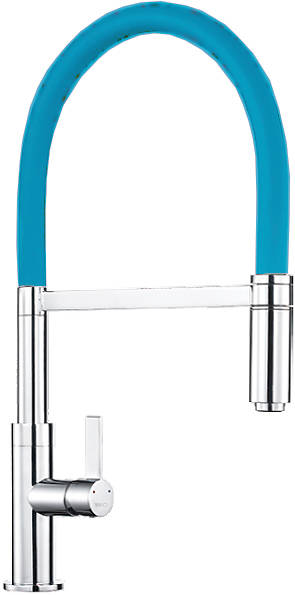 Spirale single lever rinser kitchen tap in chrome with blue hose.