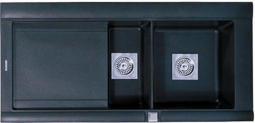 Geo 1.5 bowl rok metallic black composite kitchen sink with left hand drainer. Size 1080x515mm. Minimum base unit 600mm. Bowl depth 200mm.