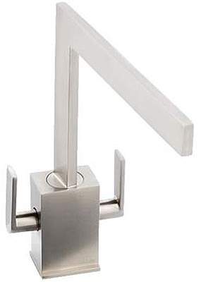 Edge monobloc dual lever kitchen tap with brushed nickel body and swivel spout.
