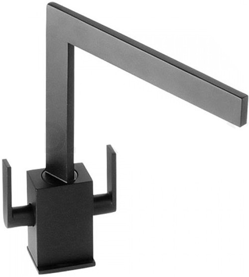 Edge monobloc dual lever kitchen tap with granite black body and swivel spout.