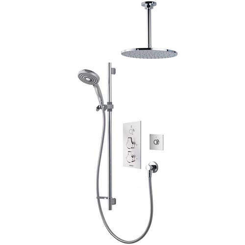 Aqualisa Infinia Digital smart shower pack 84 for combination boilers and high pressure systems (thermostatic). Complete with slide rail kit, valve, remote control, 300mm round shower head, ceiling mounting arm and chrome Astratta handles.