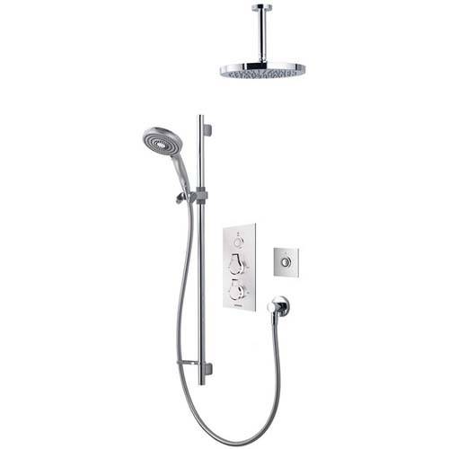 Aqualisa Infinia Digital smart shower pack 49 for gravity pumped systems (thermostatic). Complete with slide rail kit, valve, remote control, 250mm round shower head, ceiling mounting arm and chrome/white Astratta handles.