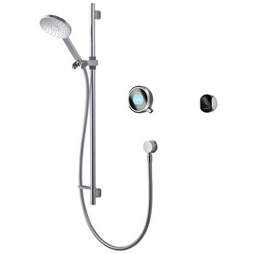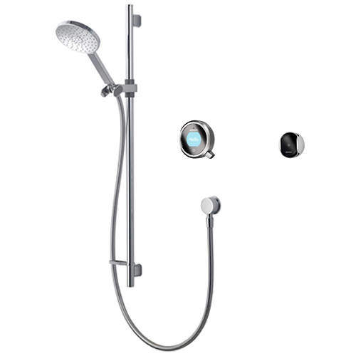 Aqualisa Q Smart digital smart shower pack 01GR for combination boilers and high pressure system (thermostatic). Complete kit with controller, mixer unit, wireless remote control, slide rail kit, wall outlet and shadow grey accent pack.