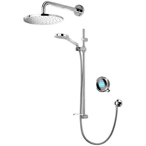 Aqualisa Q Smart digital shower pack 18C for gravity pumped systems (thermostatic). Complete kit with mixer unit, controller, 250mm round shower head, wall mounting arm, slide rail kit and metallic bright chrome accent pack.