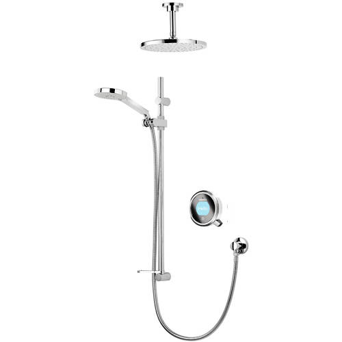 Aqualisa Q Smart digital shower pack 19W for combination boilers and high pressure system (thermostatic). Complete kit with mixer unit, controller, 250mm round shower head, ceiling mounting arm, slide rail kit and polar white accent pack.