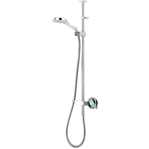 Aqualisa Q Smart digital shower pack 22BC for gravity pumped systems (thermostatic). Complete kit with mixer unit, controller, ceiling fed adjustable slide rail kit and metallic black chrome accent pack.