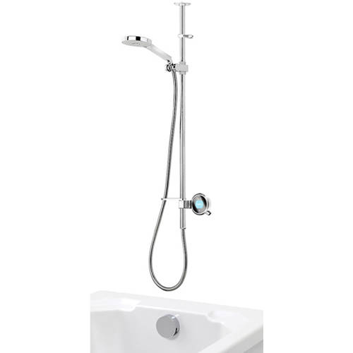 Aqualisa Q Smart digital shower pack 25W for combination boilers and high pressure system (thermostatic). Complete kit with mixer unit, controller, ceiling fed adjustable slide rail kit, bath fill outlet and polar white accent pack.
