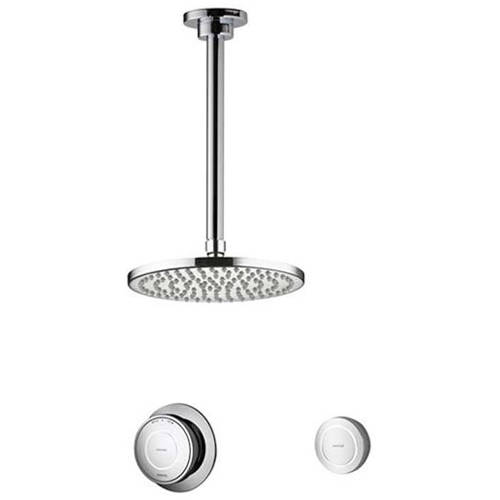 Aqualisa Rise Digital smart shower for combination boilers and high pressure systems (thermostatic). Complete with remote control, 200mm round shower head and ceiling mounting arm.