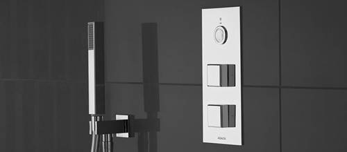 Astratta. The Infinia delivers all the trusted benefits of a thermostatic valve, with the increased efficiency and sleek design of intelligent, smart showering. Handles come in a choice of two finishes, chrome and white/chrome.