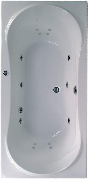 Double ended turbo whirlpool bath with 14 jets, legs and pre-fitted pump. Size 1800 x 800mm.