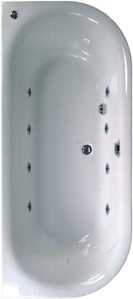 Double ended whirlpool bath with 8 jets, legs, bath panels and pre-fitted pump. Size 1800 x 800mm.
