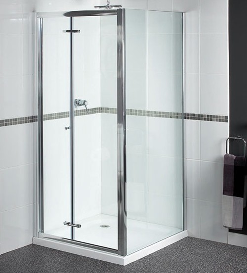 - Bi-fold shower doors have a unique hinge mechanism which folds back creating a large opening without intruding on floorspace.