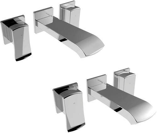 Bristan Descent wall mounted basin mixer and bath filler tap pack in chrome.