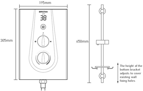 Bristan Glee offers a perfect combination of style and practicality. A digital temperature display with push on/off button, separate flow and temperature dials make it really easy to use, while its neat styling makes it nice and easy to clean.
