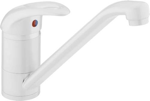 Monobloc sink mixer tap in white. Supplied with a single check valve.