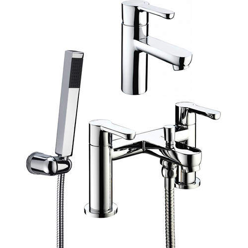 Bristan Nero mono basin and bath shower mixer tap pack in chrome finish.