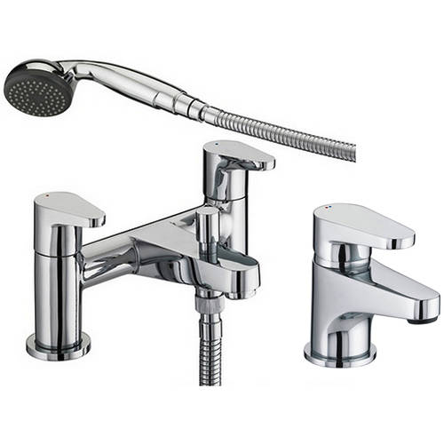 Bristan Quest mono basin and bath shower mixer tap pack in chrome finish.