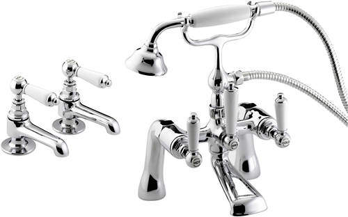 Bristan Renaissance basin and bath shower mixer tap pack in chrome.