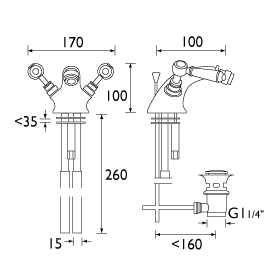 Larger image of Bristan Renaissance Bidet Mixer Tap With Pop Up Waste (Chrome).Technical image of Bristan Renaissance Bidet Mixer Tap With Pop Up Waste (Chrome).