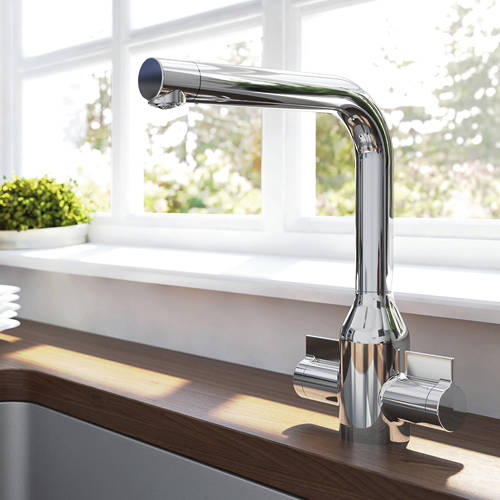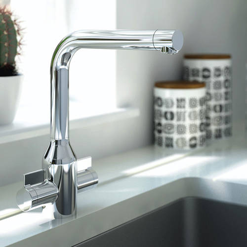 Bristan Wine easy fit mixer kitchen tap in chrome finish with lever handles.