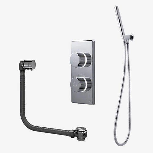 Contemporary 2025 two outlet digital shower pack with LED colour changing lights, processor unit, shower kit and bath filler with waste (high pressure systems).
