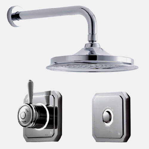 Classic 1910 single outlet digital shower valve with LED colour changing lights, lever handle, processor unit, remote control, wall mounting arm and 9" Air Burst Showerhead (high pressure systems).