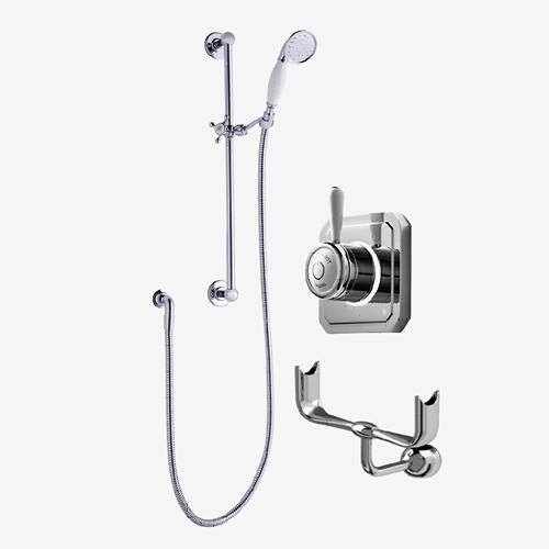 Classic 1910 single outlet digital shower valve with LED colour changing lights, lever handle, processor unit, traditional slide rail kit and handset cradle (high pressure systems).