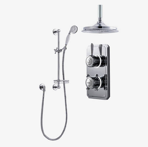 Classic 1910 two outlet digital shower pack with LED colour changing lights, lever handle, processor unit, 6" shower head, ceiling mounting arm and traditional slide rail kit (high pressure systems).