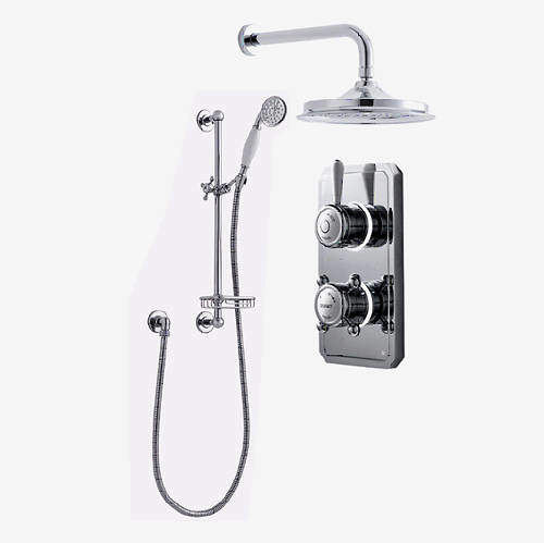 Classic 1910 two outlet digital shower pack with LED colour changing lights, lever handle, processor unit, 12" shower head, wall mounting arm and traditional slide rail kit with soap basket (high pressure systems).