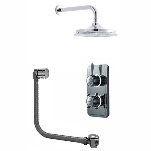 Classic 1910 two outlet digital shower / bath pack with LED colour changing lights, lever handle, processor unit, 12" shower head, wall mounting arm and bath filler with waste (high pressure systems).