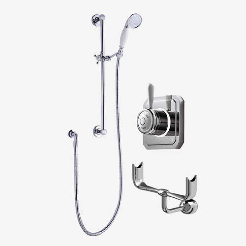 Classic 1910 single outlet digital shower valve with LED colour changing lights, lever handle, processor unit, traditional slide rail kit and handset cradle (low pressure systems, pumped).