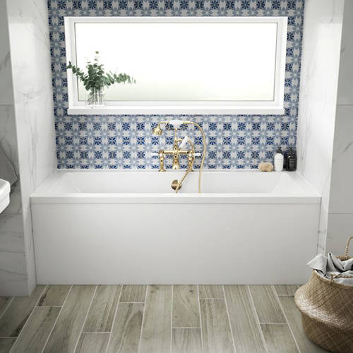 BC Designs Durham Solidblue double ended bath in gloss white finish with front panel (1700x700mm).