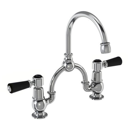 Burlington Kensington 2 hole arch basin mixer tap in chrome finish with black accents (quarter turn, 230mm pipe centres).