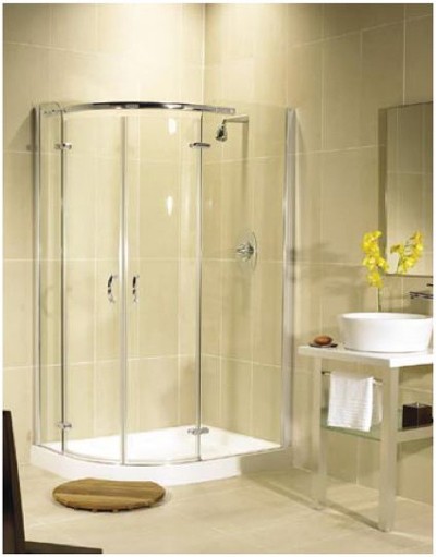 Allure left handed 800x1200 offset quadrant shower enclosure with hinged doors.