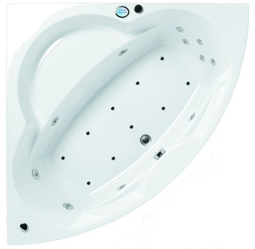 Apollo 1400 Platinum Corner Whirlpool Bath with chrome whirlpool system.