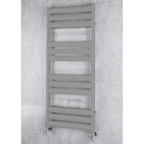COLOUR Tallis heated ladder rail with oval steel tube and wall brackets in grey aluminium (1060x500mm).