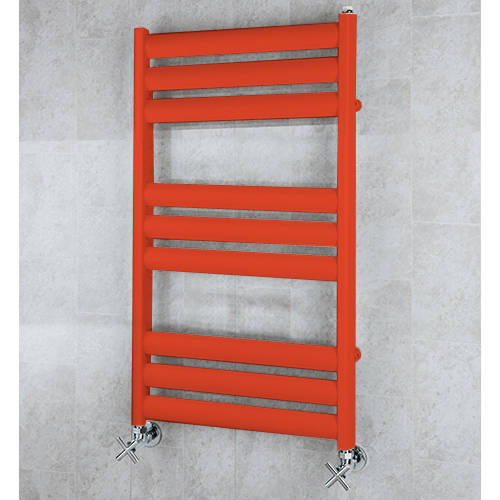 COLOUR Tallis heated ladder rail with oval steel tube and wall brackets in flame red (780x500mm).