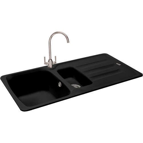 Carron Phoenix Calla 150 double bowl, granite inset kitchen sink in jet black with waste and drainer (reversible).