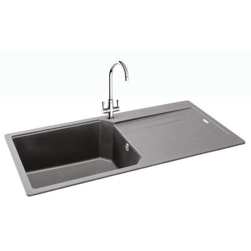 Carron Phoenix Aruba 100 single bowl, granite inset kitchen sink in stone grey with waste (reversible).