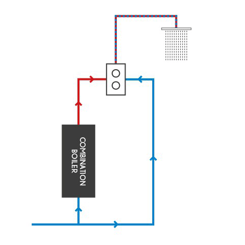 - Keeps the water at the set temperature - even if someone turns on a tap.