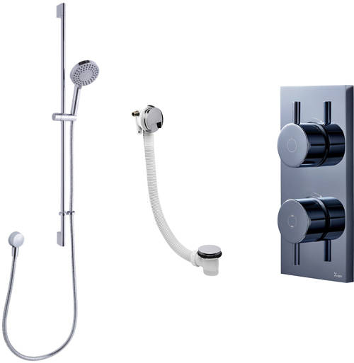 - Central shower kit: adjustable slide rail, shower handset, hose and wall outlet (chrome).