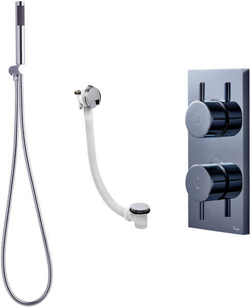 - Shower kit: shower handset, hose and bracket with built in shower outlet (chrome).
