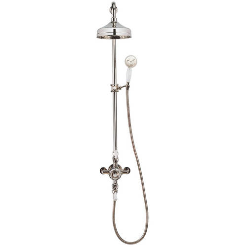 Crosswater Belgravia thermostatic 2 outlet exposed shower kit in nickel finish with valve, rigid riser, 8" round head and adjustable height shower handset (slider).