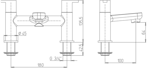 Crosswater Nova tall basin and bath filler tap pack in chrome finish with lever handles.