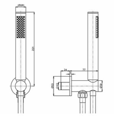 Crosswater MPRO designer shower handset in matt white finish with hose, wall bracket and integrated outlet.