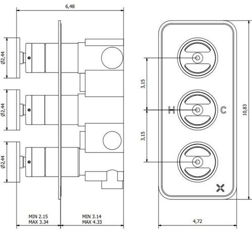 Crosswater UNION Thermostatic Shower Valve in brushed nickel finish with Wheel control (three outlets).