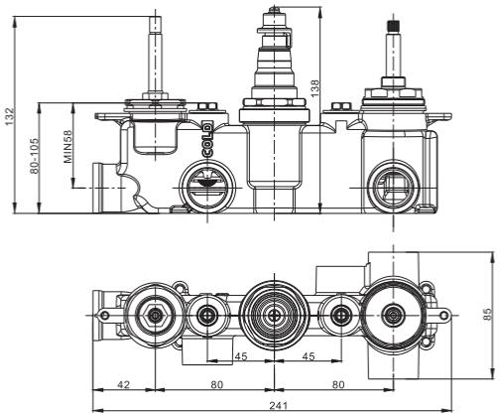 Crosswater UNION Thermostatic Shower Valve in brushed black finish with Wheel control (three outlets).