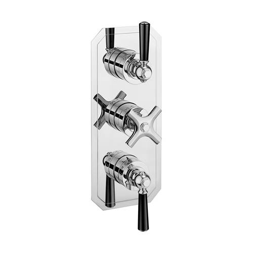 Crosswater Waldorf thermostatic 3 outlet shower valve in chrome with black lever handle.
