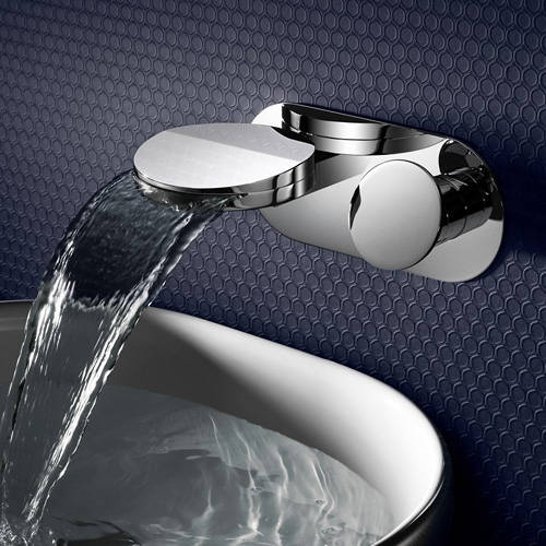 Crosswater Water Circle wall mounted basin tap in chrome finish with waterfall spout.